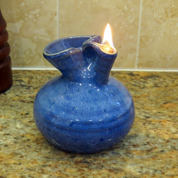 Pottery Oil Candle In Deep Blue Glaze Etsy